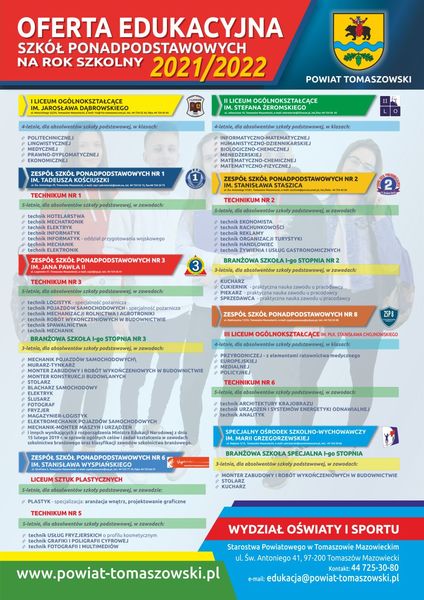 Oferta edukacyjna szkół ponadpodstawowych powiatu tomaszowskiego na rok szkolny 2021/2022